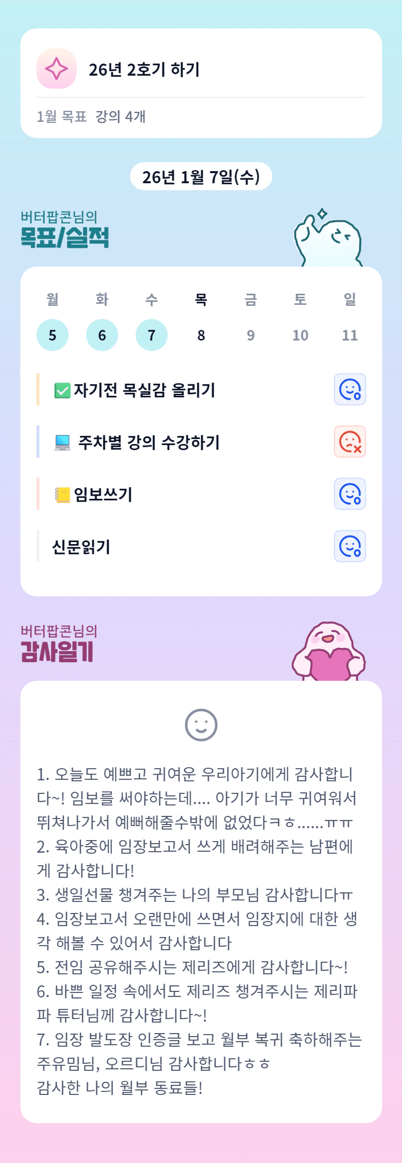아이들의 사랑이 엄청 느껴집니다. ㅎㅎ 팝콘님.. 오늘 사임까지 정말 수고하셨습니다. 주말 임장과 튜터링데이도 즐겁게 잘 보내시죠.. 이번 주말도 화이팅입니다^^