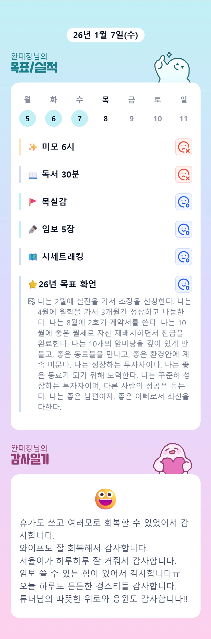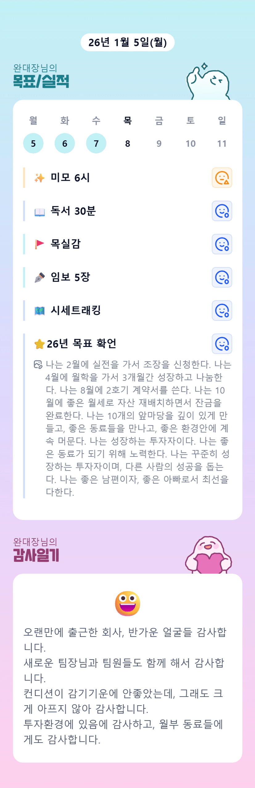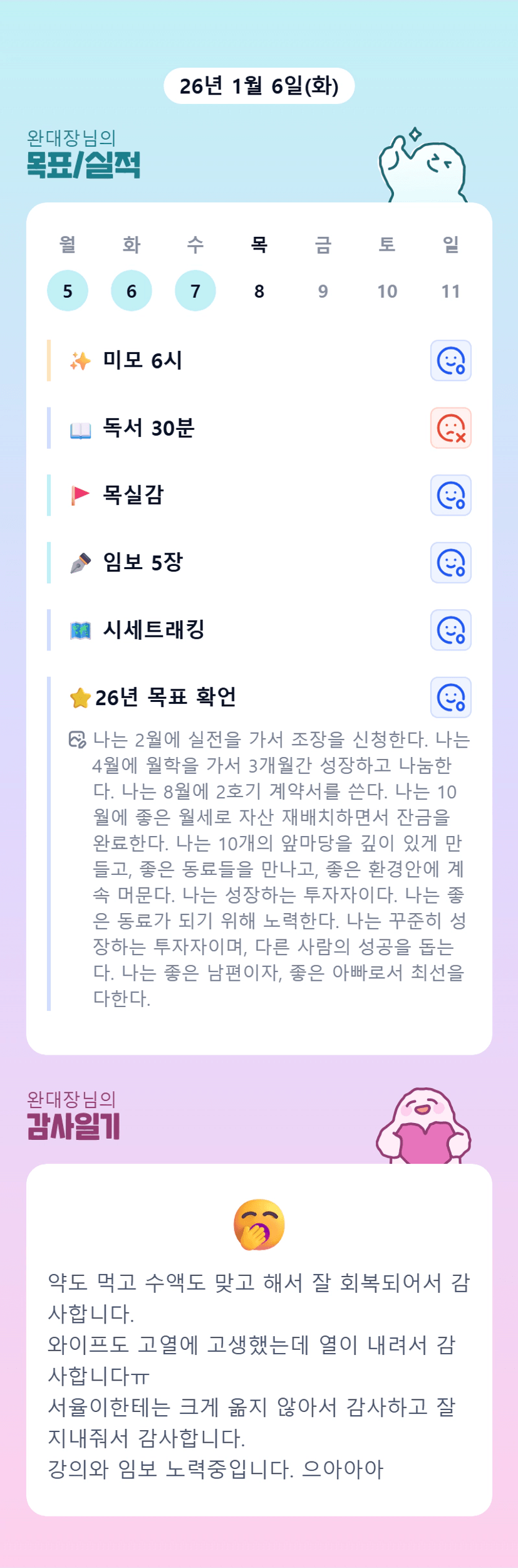 새로운업무환경과 감기.. 완대장님 고생많으십니다 😭 가족분들도 컨디션회복 빨리되시길...