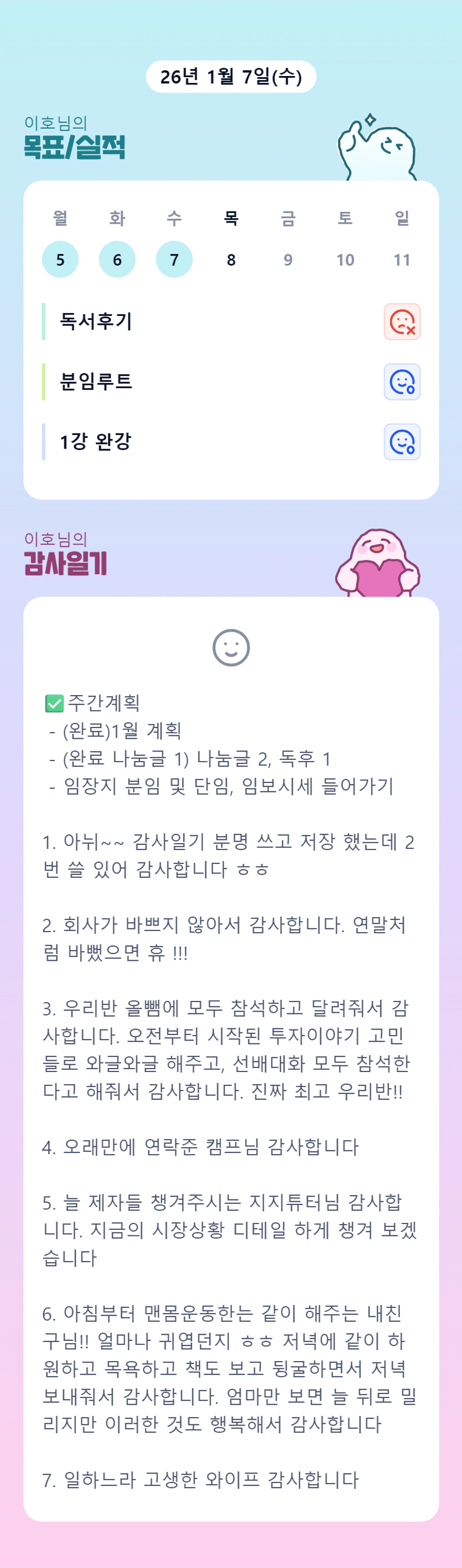 오늘도 고생하셨습니다!! 귀여운 운동친구 부럽네요 반장님 ㅎㅎㅎ