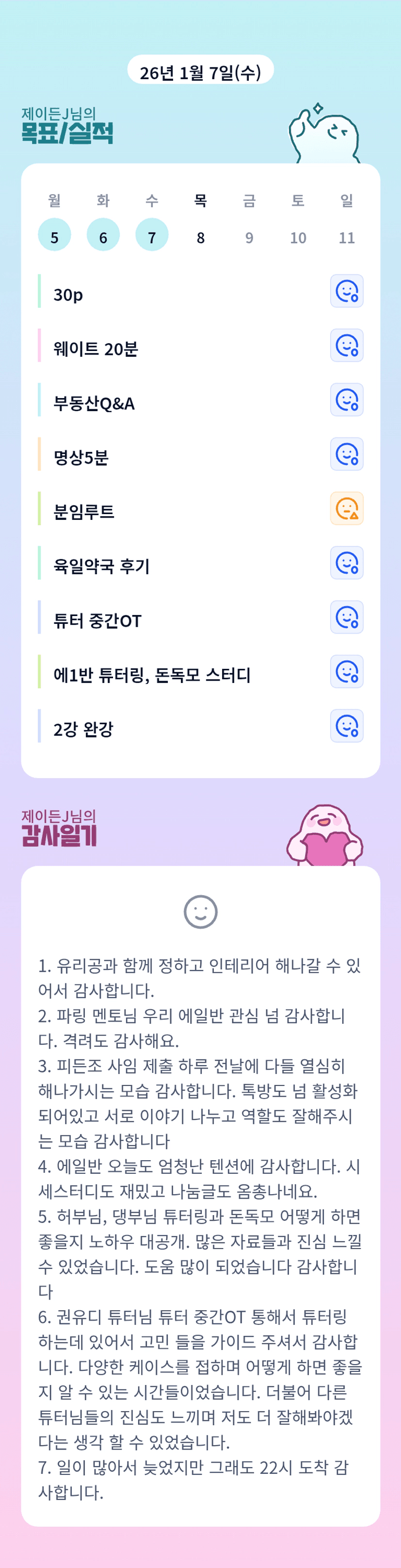 튜터님~~ 건강도 지키시면서, 오늘하루도 힘내세요^^