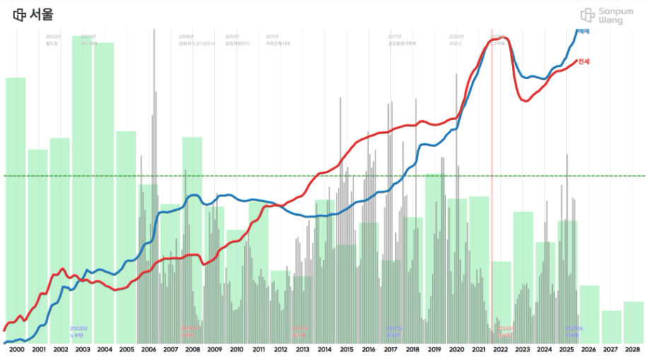 • 2021년 (폭등장): 매수 심리 80 돌파, 매매가 20% 폭등. "오늘이 제일 싸다"던 시절