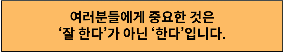 그나저나 1호기를 무작정 저질러 놓고 2호기 투자가 자꾸만 망설여지고 미루고 싶은 나에게 강의자료에 빠악 주목도 있게 적혀있는 글귀가 용기를 주었다.