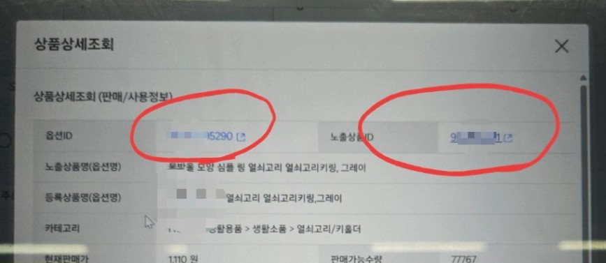 옵션ID와 노출ID가 다르고, 노출ID를 클릭하니 제스토어명이 있는 등록상품명과 동일한 상품 (아이템 위너 아님)이 보이는 페이지로 넘어갔어요.
