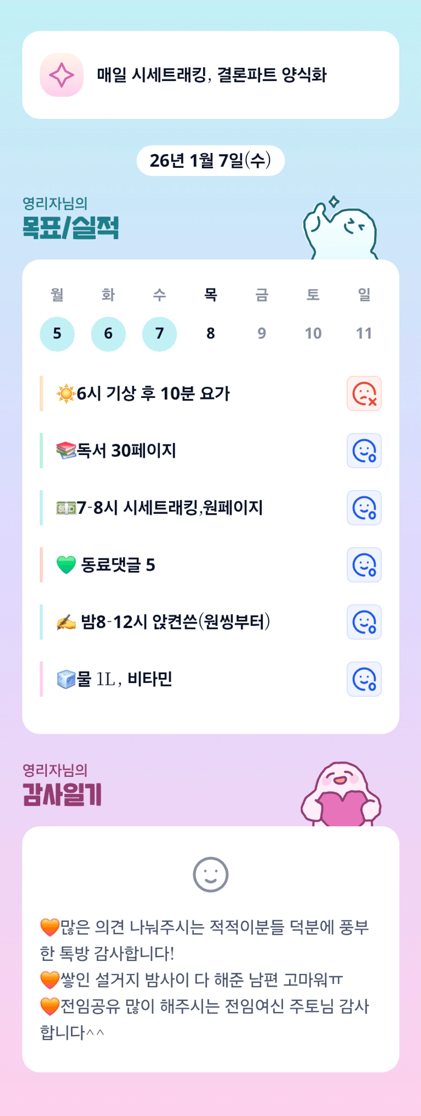 오 건강도 가득 챙기는 우리 리자뉨~ 항상 적극적 소통 감사합니당