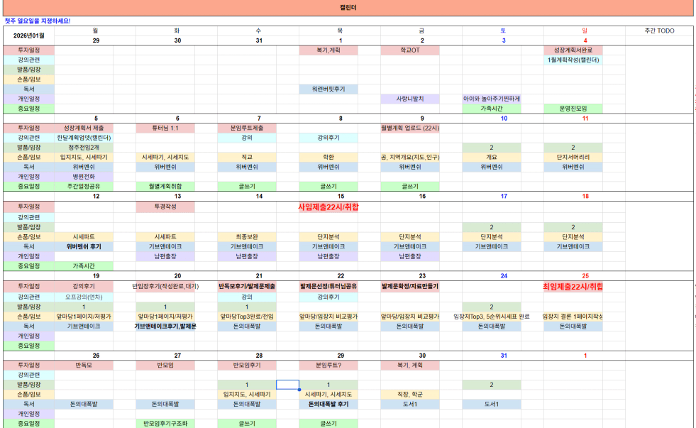 1월 목표는 임장횟수와 매물횟수를 늘리는 것을 원씽으로 합니다