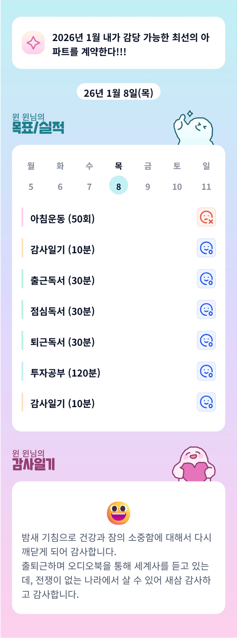 윈님 컨디션 관리 화이팅 하세요^^ 오늘도 수고 많이 하셨습니다.