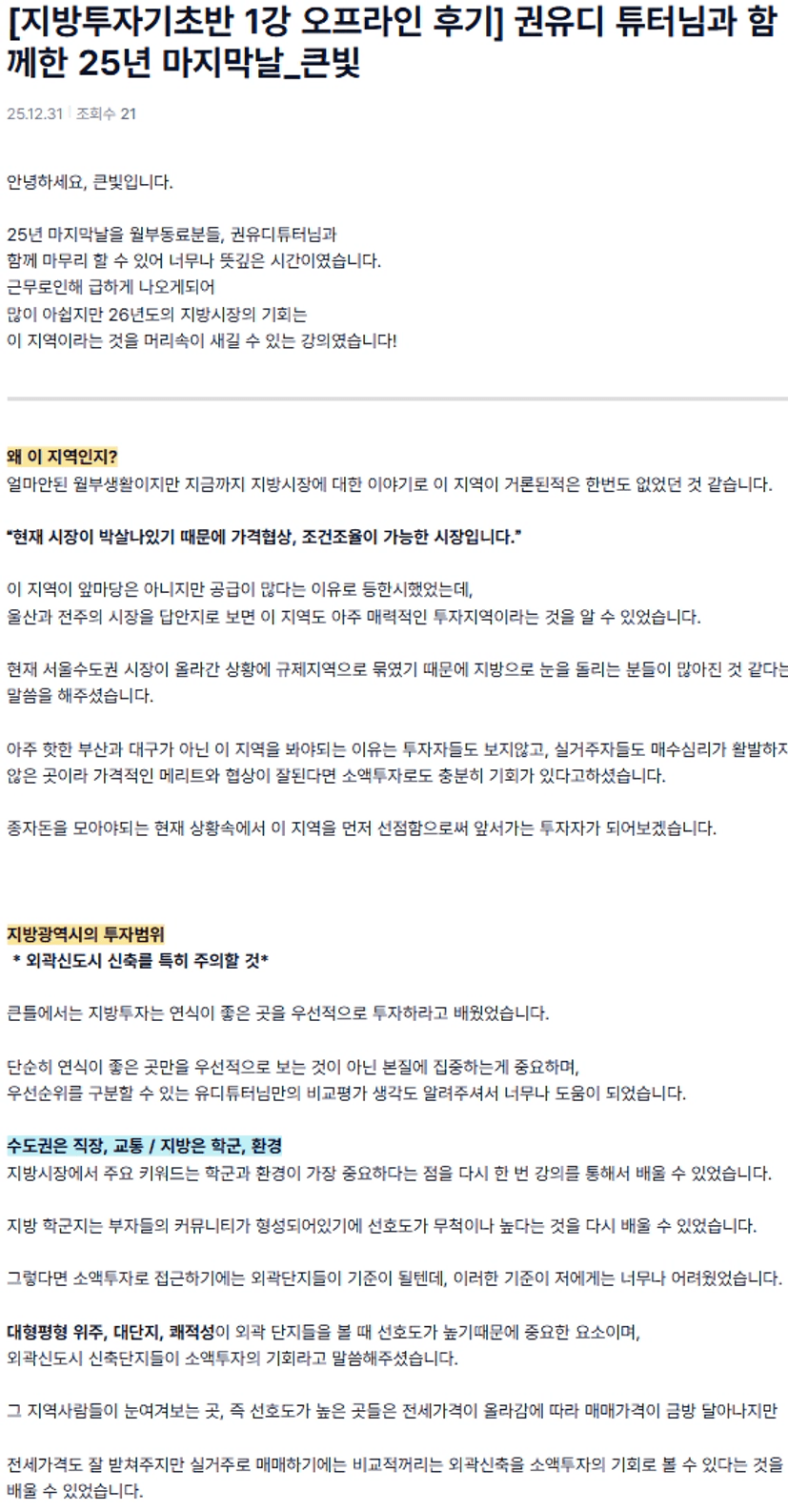 주요 뽀인트들을 딱딱 짚어주신 조장님 덕분에 한번더 복기!!ㅎㅎ 오프강의에 다시 복습까지 고생 많으셨습니다🤩 지방투자 할 수 이따!!