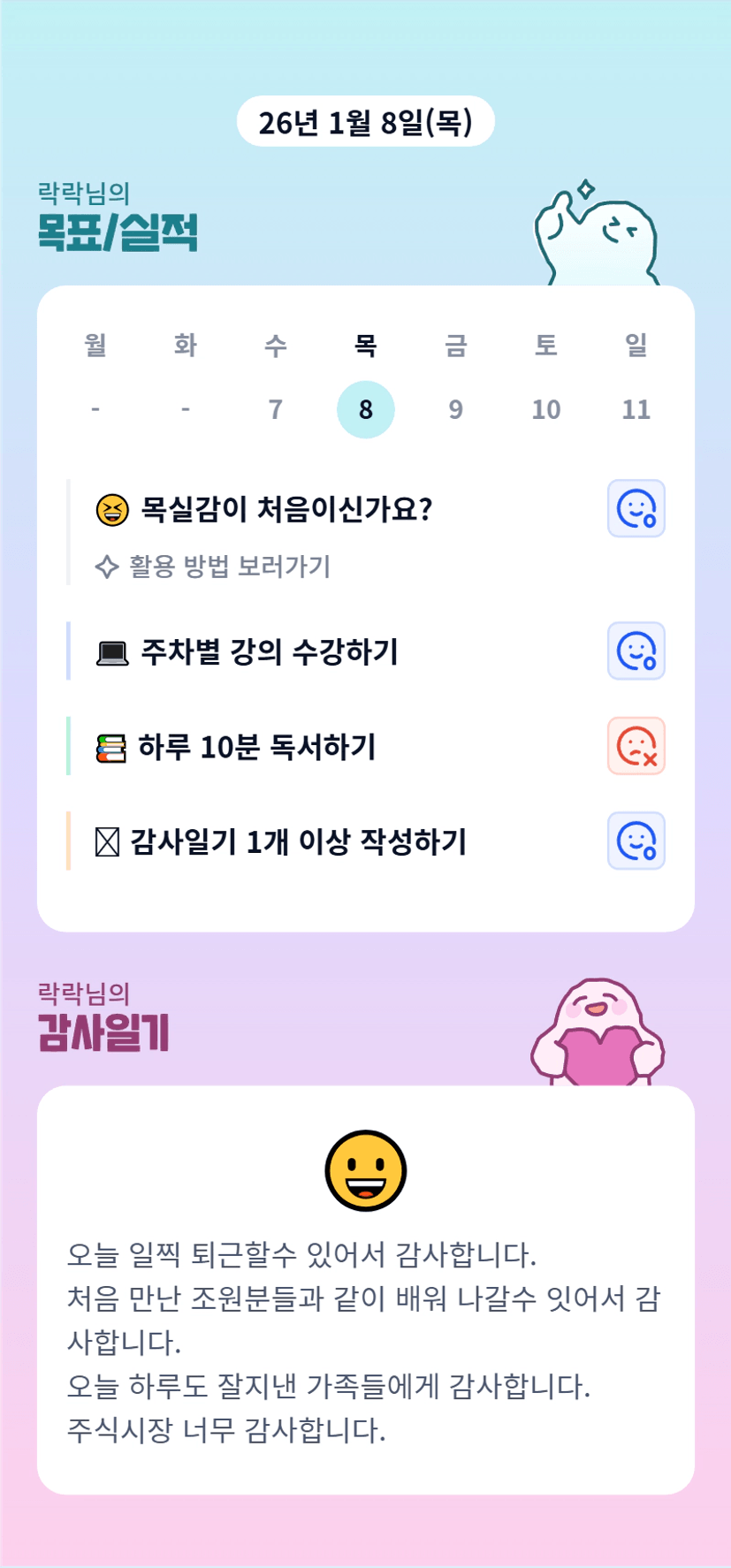 2️⃣ 1주차 목실감 작성하며 어땠는지 소감도 써보기 ✍🏻