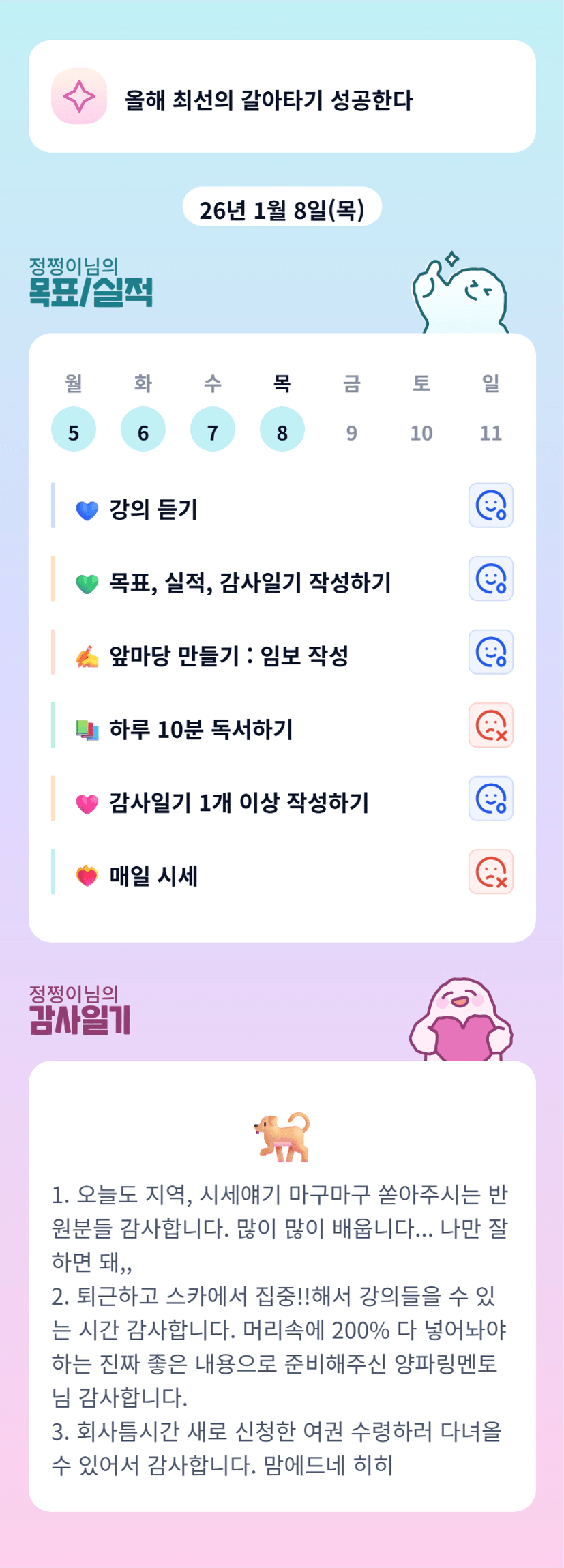 어디 가욧? ㅎㅎ 강의 너무 좋았쥬? 오늘도 화이팅!