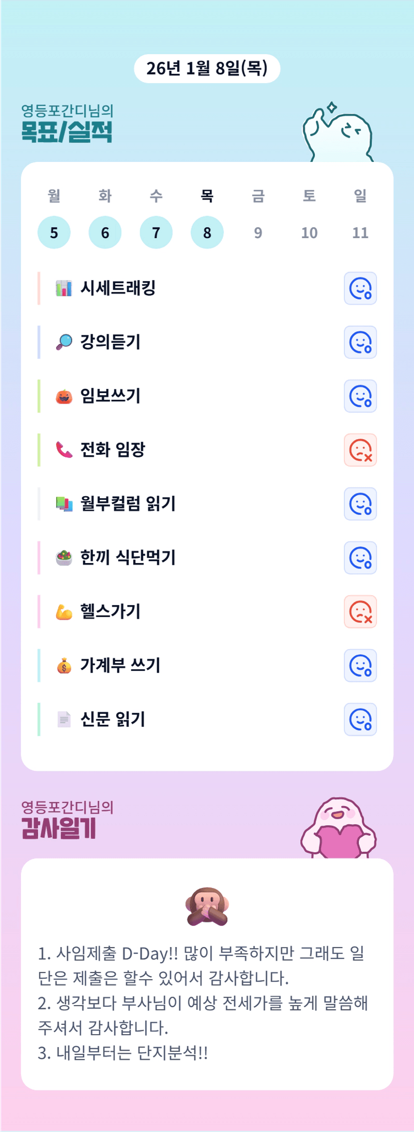 전임매스터 간디님이 전임을 안 하셨다니~?? 🤔🤔 는 사임마감날이군여 ㅎㅎㅎ 고생하셨으요★★