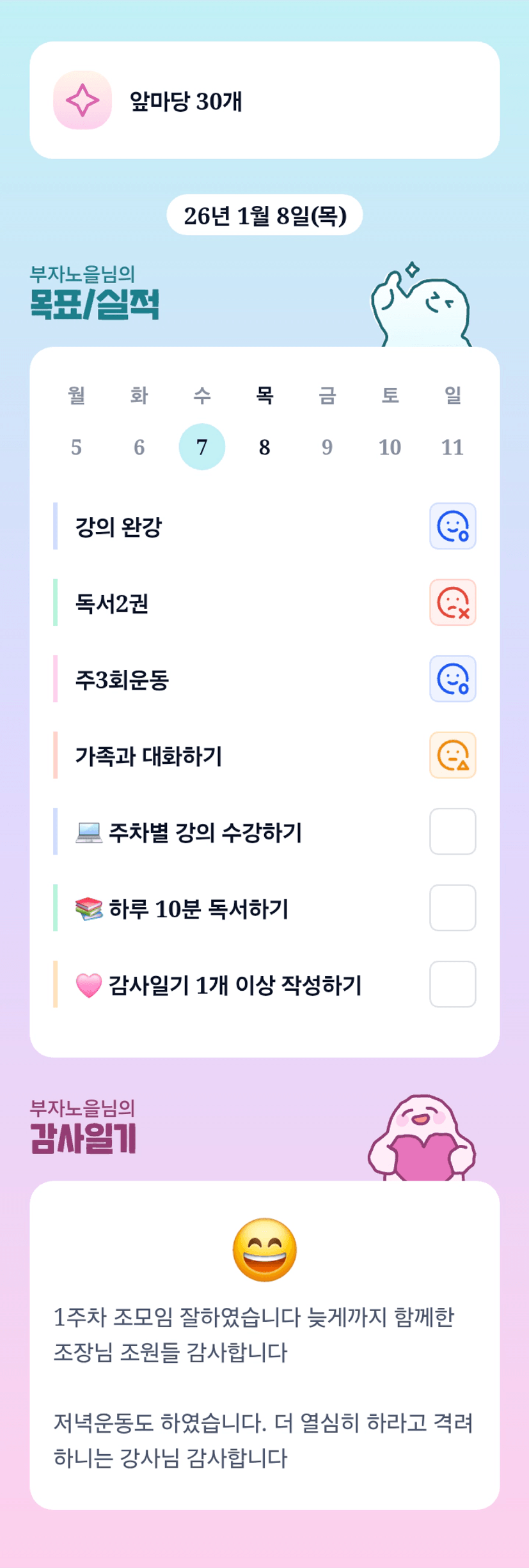 부노님~~앞마당 30개 너무 멋진 목표예요 와우 우와~~앞마당 1개인 저 감탄하고 응원하고 갑니다♡