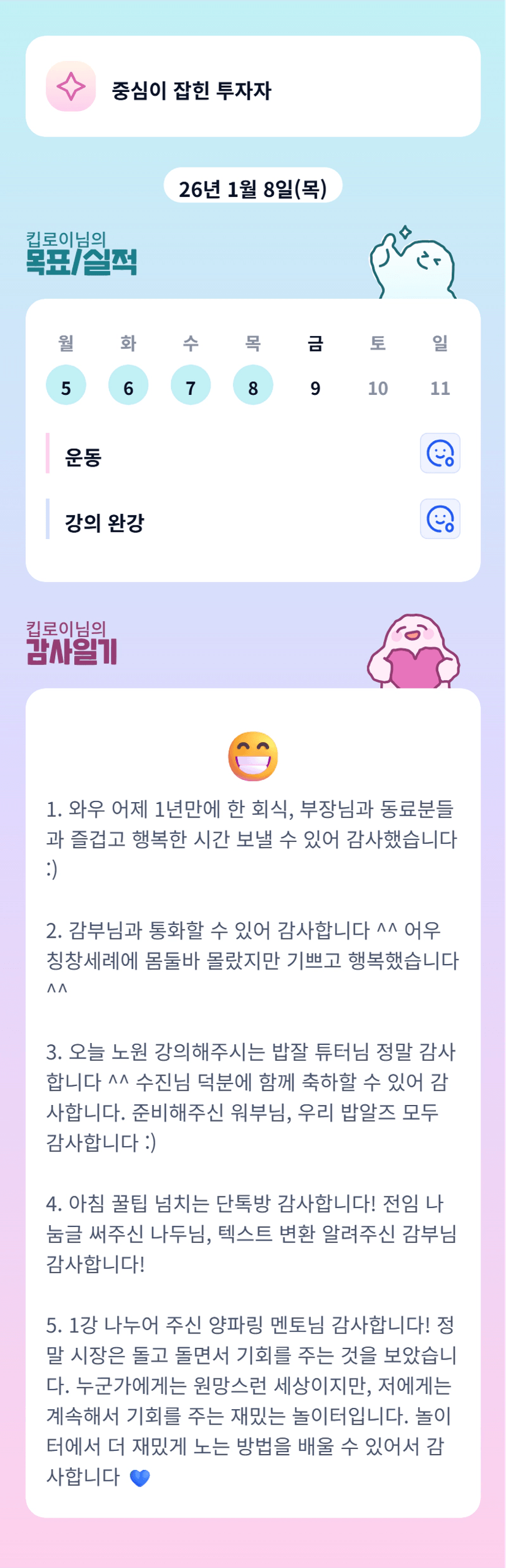 회식도 투자도 다 즐겁게 해내시는 로이님 초긍정 저도 배우겟습니다 ㅎㅎ