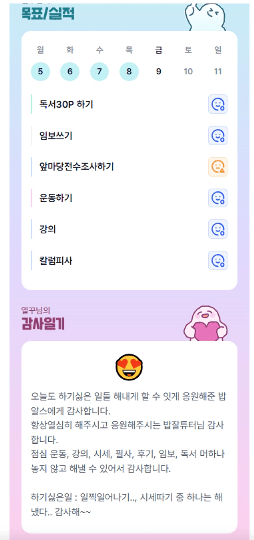 크 뭐 하나 빼놓지 않고 해낸 하루🔥