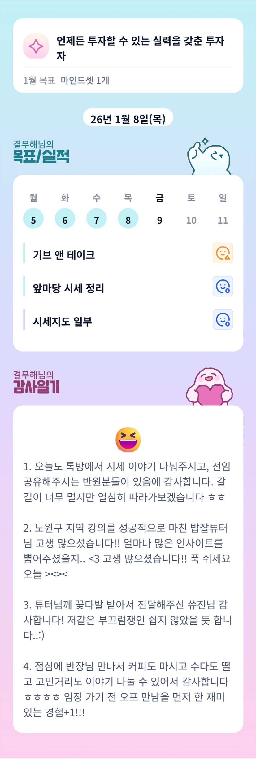 무해뮤해무해무해님 즐겁게 성장하고 있는 모습이 그려집니다ㅎㅎ 파이팅 무해님!!! 응원해요><