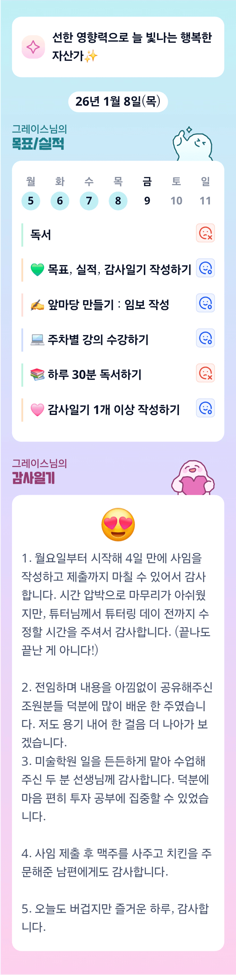 그레이스님 사임 제출 축하드립니다. 앞으로 더 잘하실 그레이스님 응원합니다.