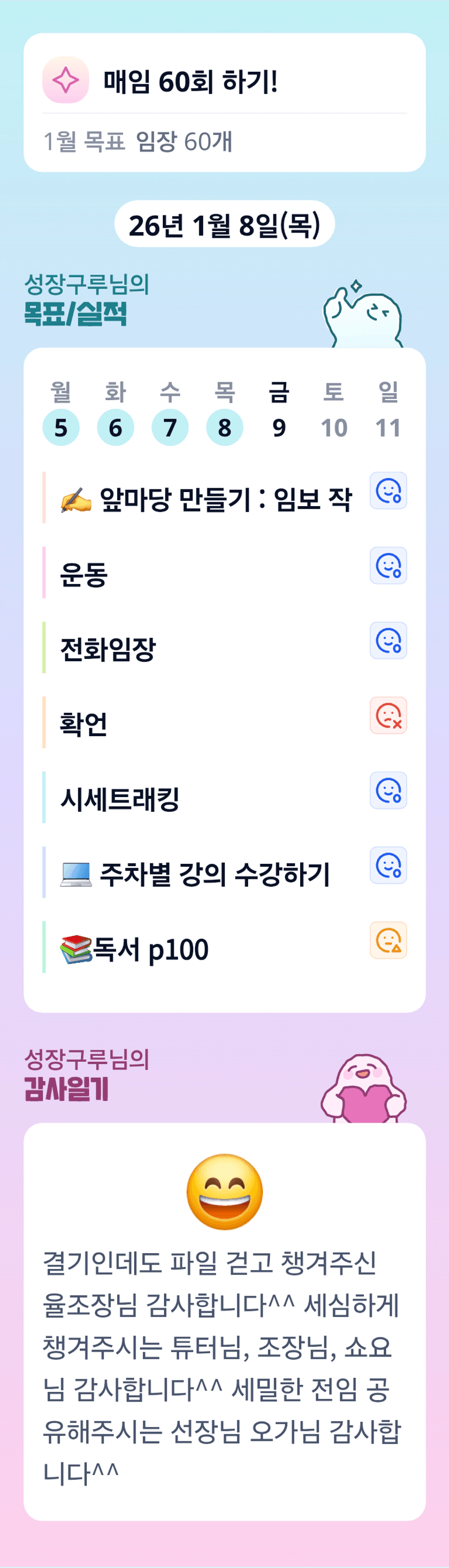 우리 구루님~~ 사임제출 고생하셨어요!! 매일 매일 성장하시는 구루님을 늘 응원합니다♥ 오늘도 기분 좋은 하루 만들어 가셔요~ 화이팅!!!