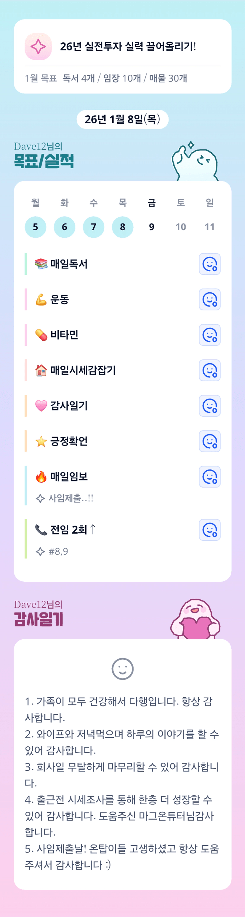 데이브님 올클리어 넘 멋지십니다!!!사임제출도 넘 고생 많으셨고, 출근전 시세조사도 파이팅입니다!!!아자아자!!
