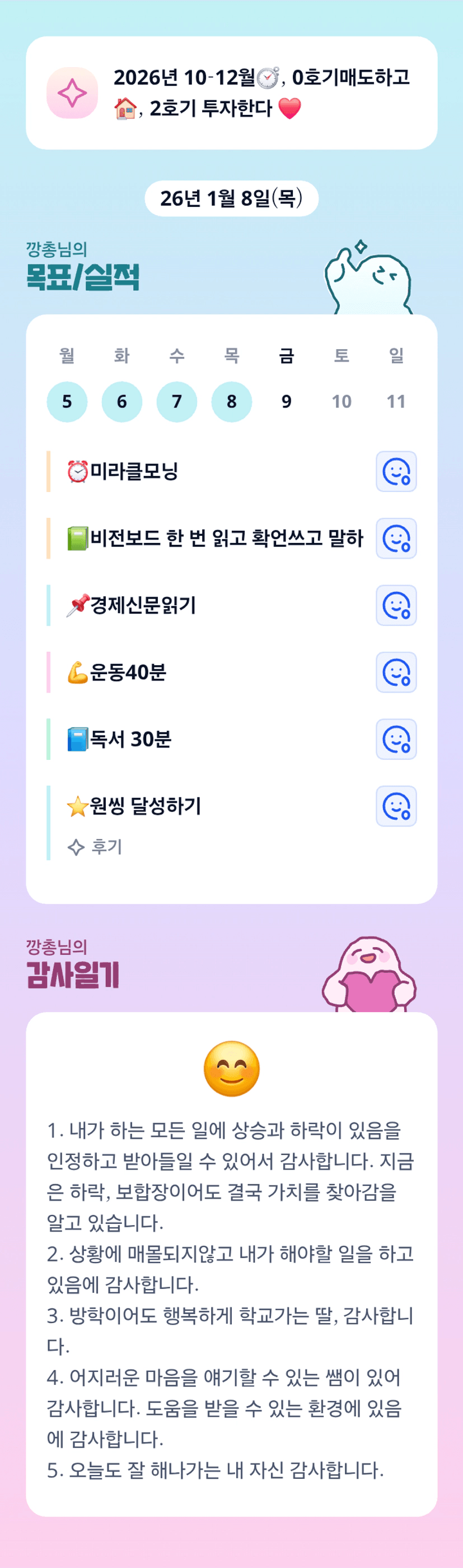 긍정확언 같은 감사일기네요 : ) 깡총님의 감사일기 볼 수 있어서 감사합니다 : )