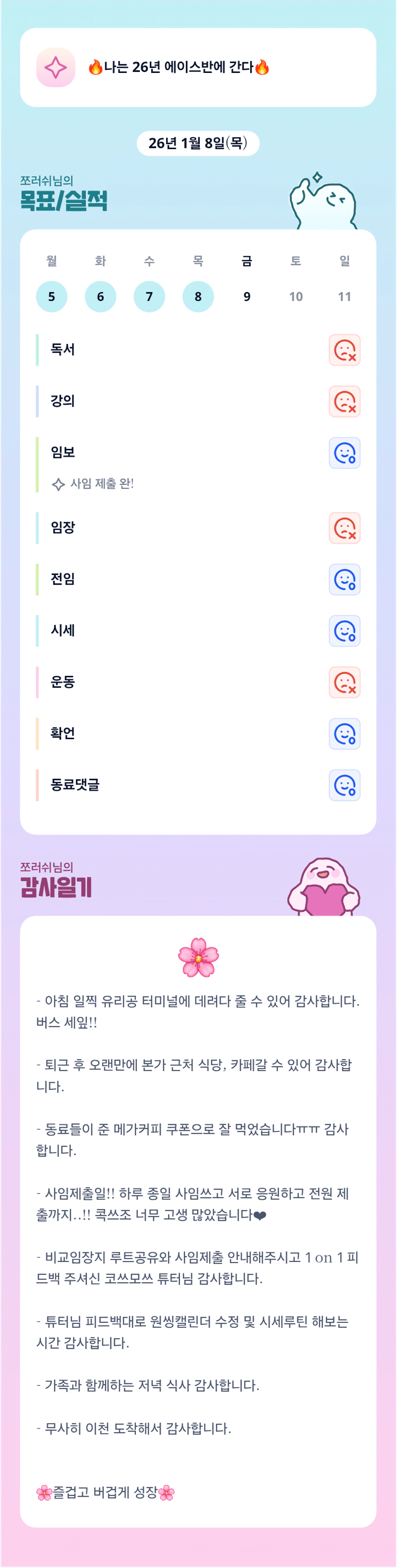 코쓰모쓰님 넘넘 따뜻하시죠 ㅎㅎㅎ 쪼러쉬님 통해서 근황듣는것 같아 내적친밀감이 더 올라가네요^^~ 옛날에 저희 반장님 이셨거든요 ㅎㅎㅎ