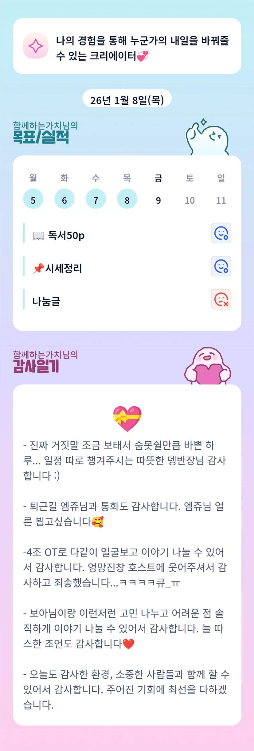 가치님 엄청 바쁜 하루 너무 고생 많으셨어요~~