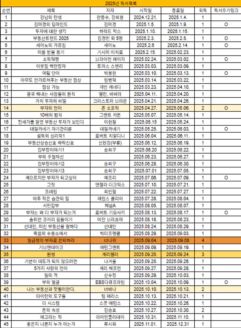 24년도 월부에 입성해서 읽은 책 36권. 25년도 1년 동안 읽은 책 45권.