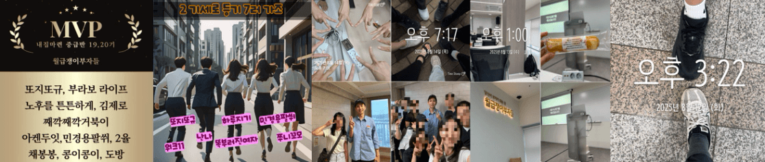 하나를 물어보면 100을 알려주는 박학다식 슈퍼지니님, 매일 칼럼요약 해주셔서 공유해주시며 정신차리게 해주시는 또지또규조장님, 매번 아침기사와 날씨안내 해주시는 노토리조장님, 그 외 함께했던 모든 동료들, 매번 댓글로 응원주신 동료들 다 너무너무 감사합니다ㅠㅠ