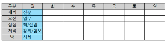 하루를 5개의 시간대로 구분한다. 즉, 5개의 블록 X 7일= 35개의 블록