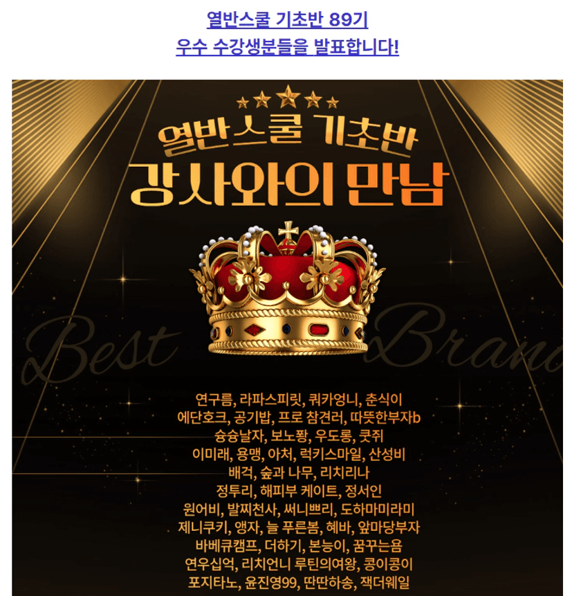 25년 12월 열반기초반 조원으로 활동했던 저에게도 너무나 감사하게 “강사와의 만남”에 초청되었습니다.