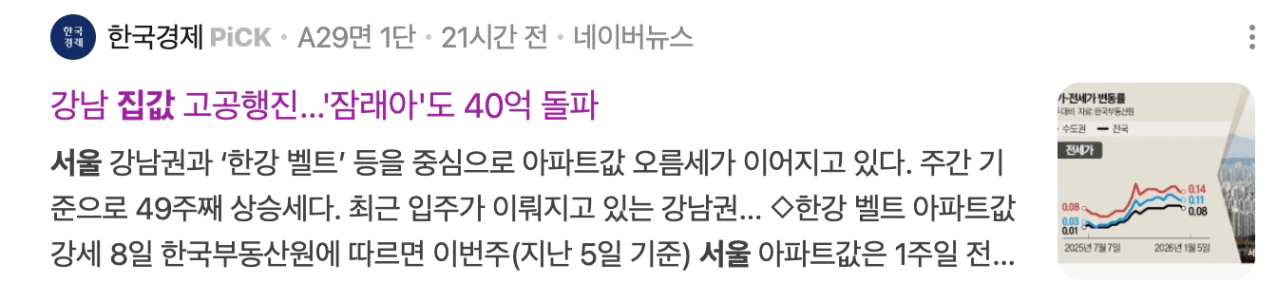 요즘 집값이 상승했다는 기사가 자주 보입니다.