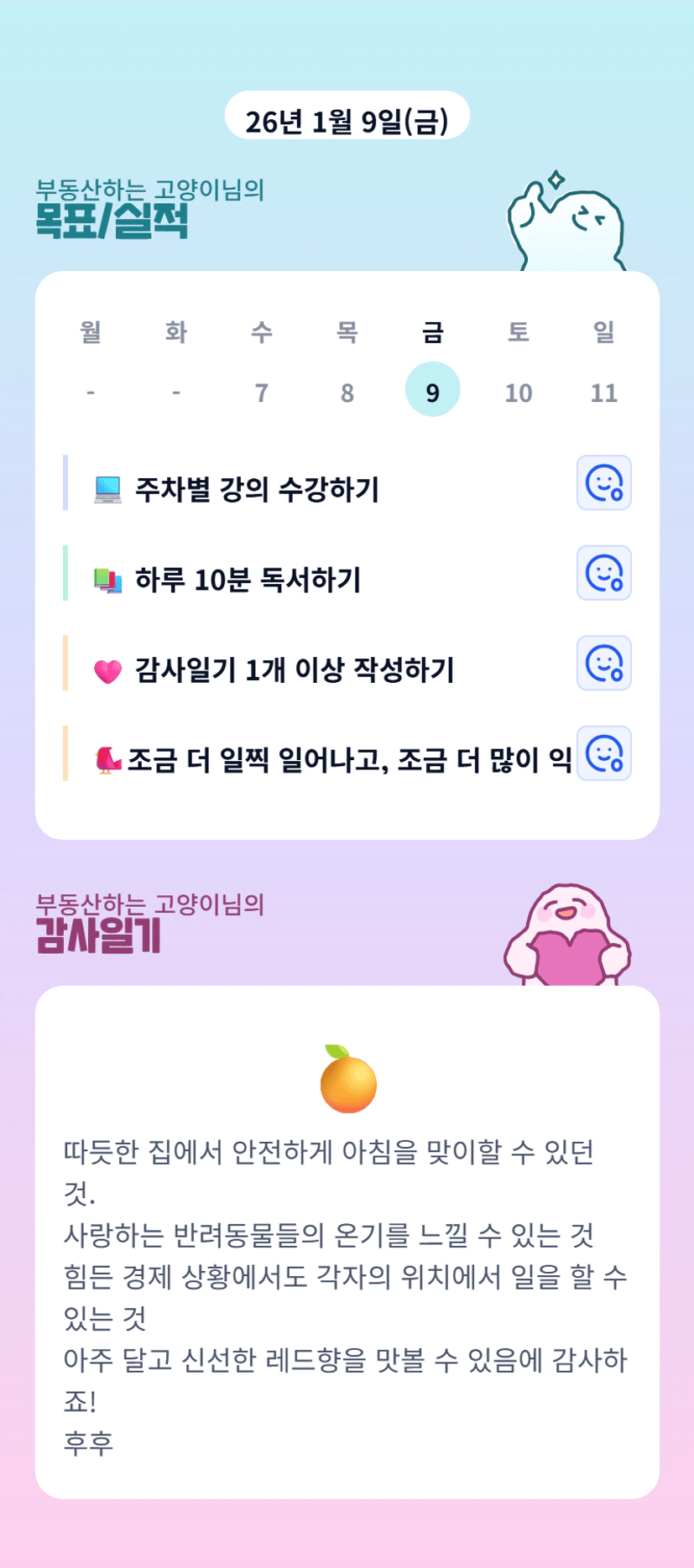 루틴 도장 깨는거 재밌어 하는데 목실감 덕에 좀 더 자기효능감이 쑥쑥 올라가네요!
