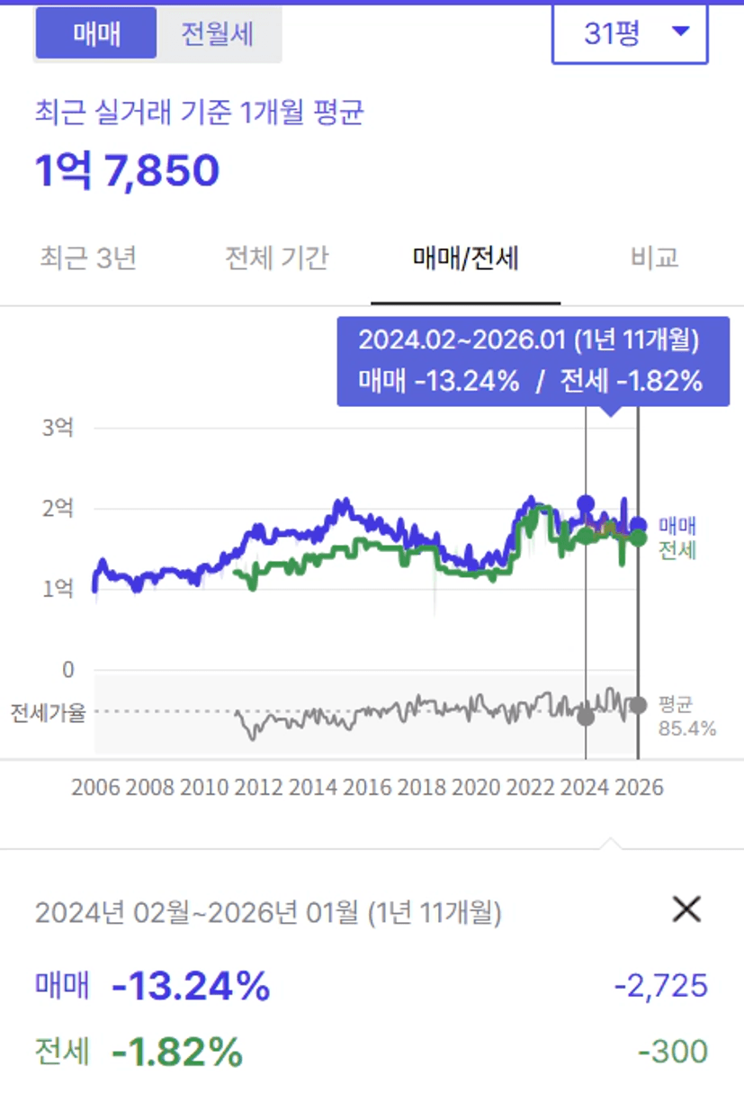 당연히 투자야 안 했겠지만 결과가 이렇습니다. 유디님께서는 지방, 특히 구축을 볼 때 위치 때문에 빠지는 함정을 알려주셨습니다. 수도권에 익숙한 사람은 위치 좋은 구축의 힘에 대한 신뢰가 있습니다. 그러나 지방 구축은 단순히 중심지에 위치하거나 택지 느낌이 난다고 가격이 오르지 않는다는 것을 깨닫게 되었습니다. 앞으로 빠질 수많은 함정을 만날 때 유디님의 말씀을 떠올려야겠습니다.