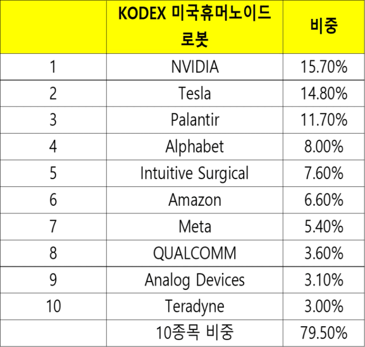 KODEX 미국휴머노이드로봇 ETF는 상위 10종목