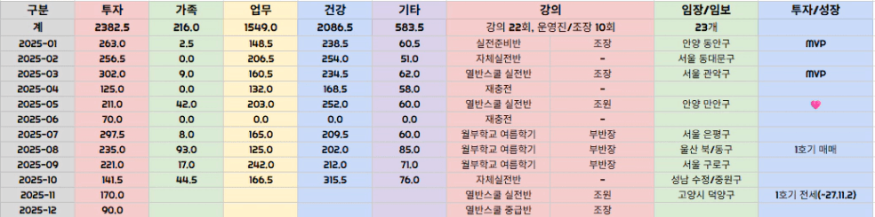 네 가지 요소 중에서도 가장 성과가 있었던 부분은 강의와 투자입니다. 기초반에서 실전반으로, 실전반에서 월부학교로 가기까지의 긴 시간들을 경험한 감사한 시간들이었습니다. 그 속에서 ‘환경’ 덕분에 실전투자까지 경험하였기에 더할나위 없이 감사한 2025년이었던 것 같아요.