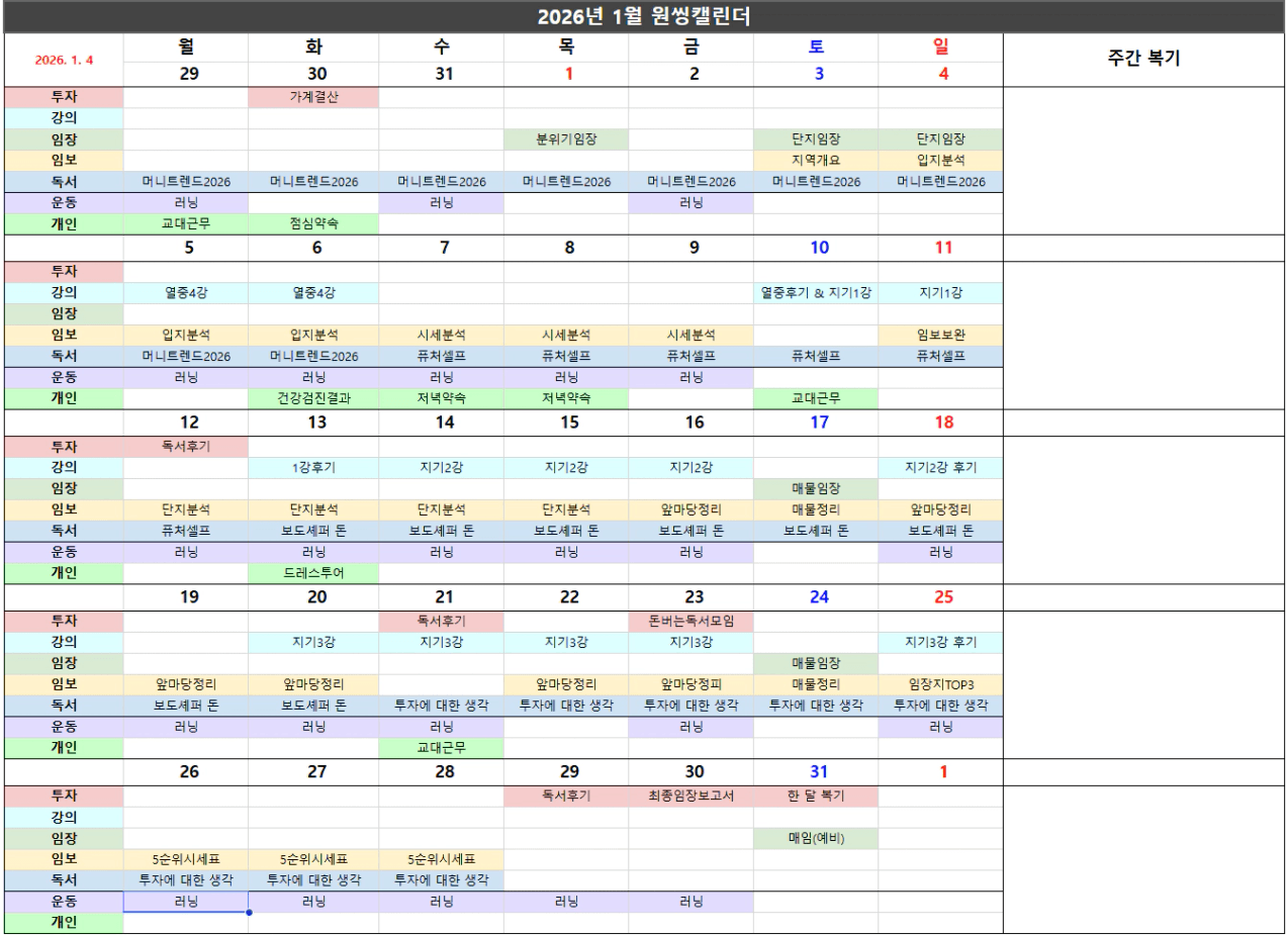 [26.1월] 독서 & 후기 4권 / 강의 지투기온리강의 / 임장 군포시 / 투자 불완전한 5순위시세표 완성