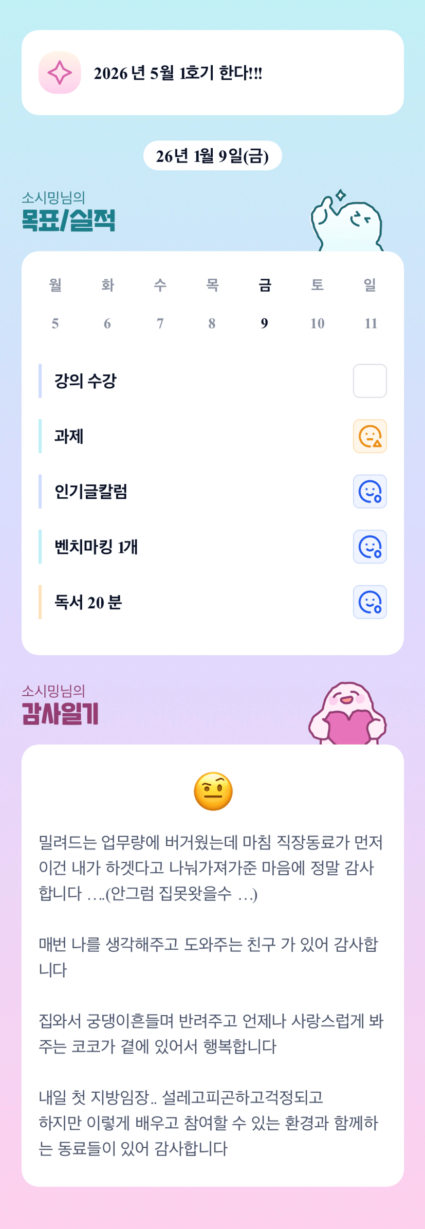 바쁜만큼 성장중이실 겁니다! 잘 해내실 소시밍님 파이팅💛5월 1호기 가자아아!!
