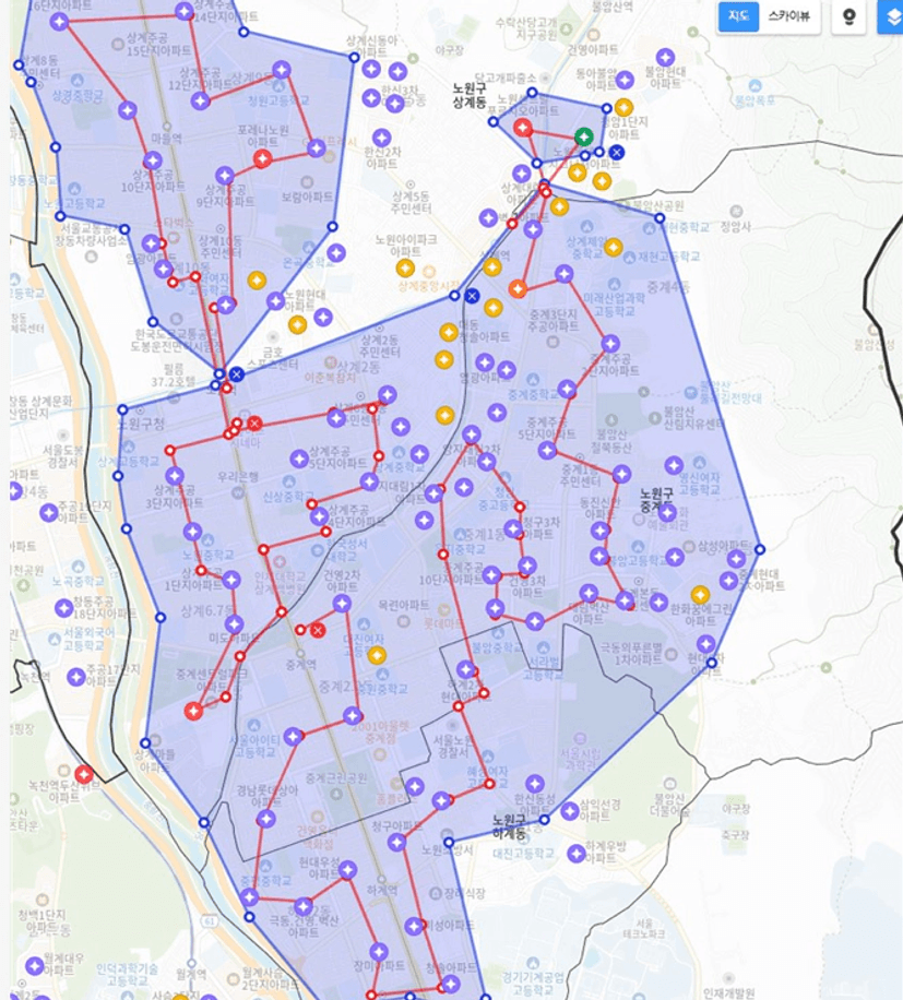 이때 카카오맵에 내가 다녀야 할 단지가 아래와 같이 즐겨찾기 되어 있다면!