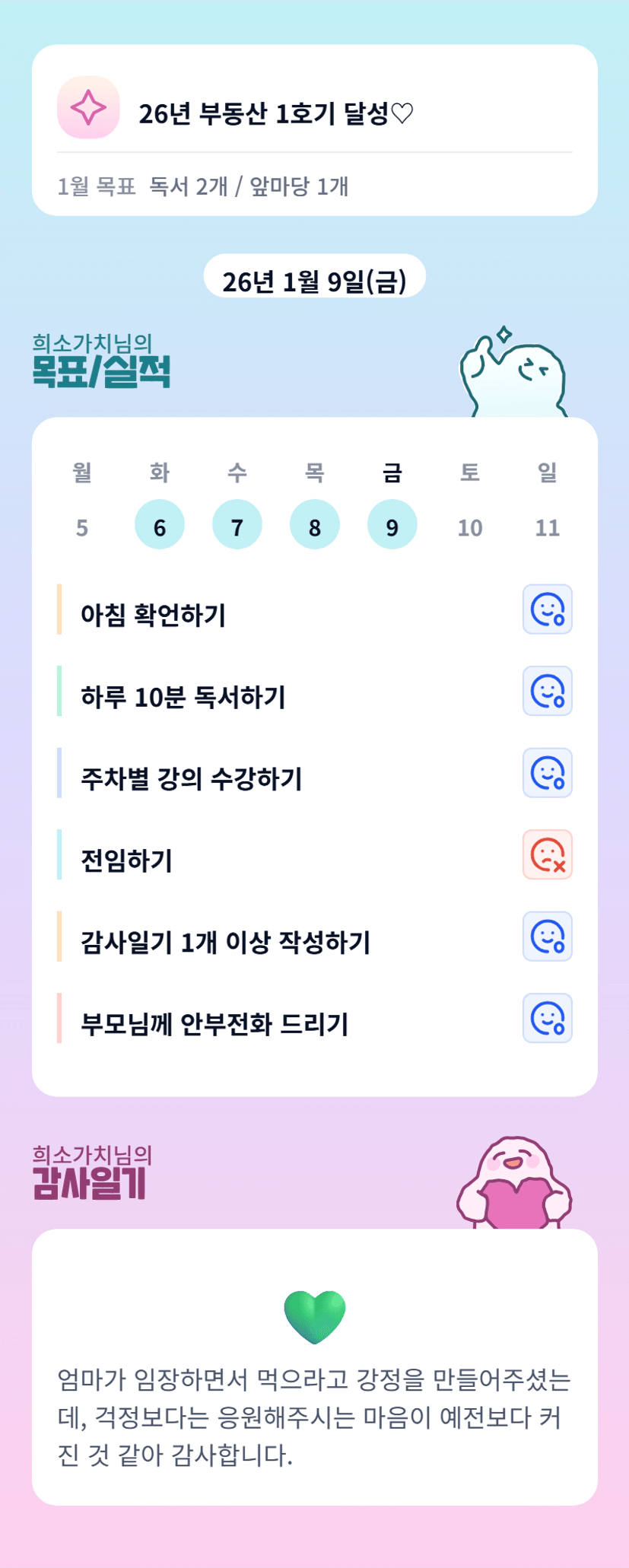 희소님 감사 일기에 저도 마음이 따뜻해졌습니다. ^^ 부모님께서도 응원해 주시니 분명 성공할 겁니다!!