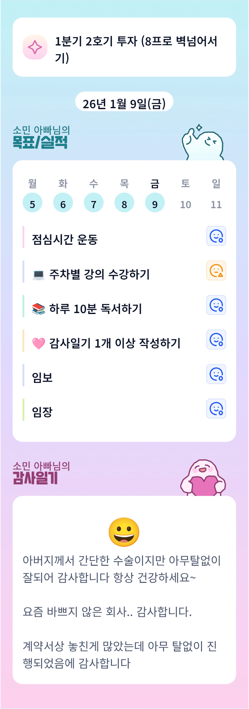 아버님께서 수술하셨나봅니다! 수술이 잘 되어 다행입니다 ㅎㅎ 바쁘지 않은 회사 너무 부럽습니다~~화이팅입니다 ㅎㅎ!!