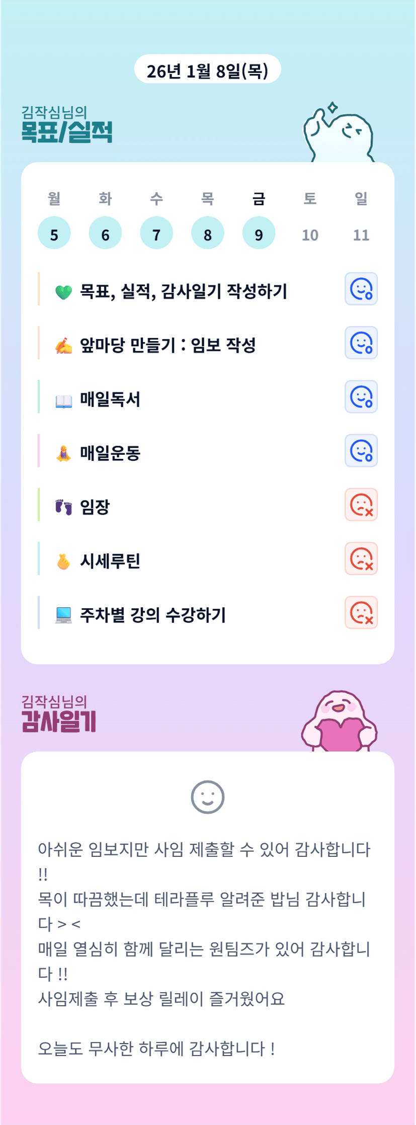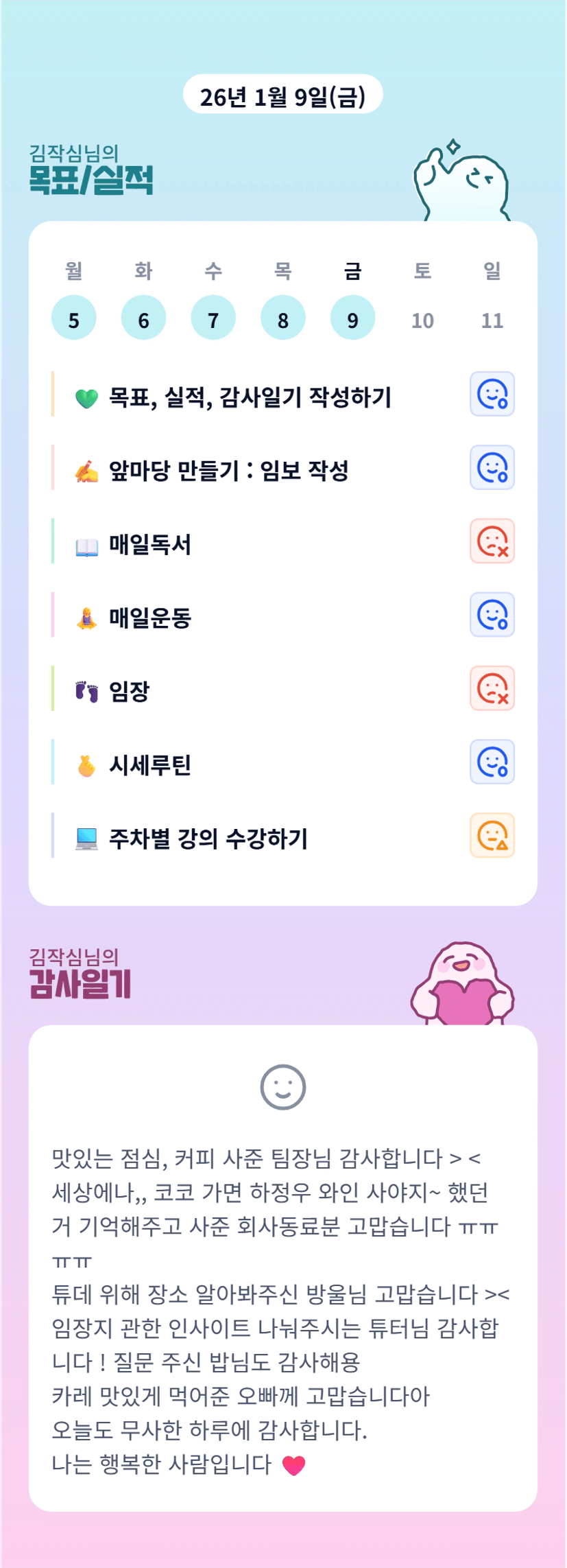 조장님 원팀즈 챙겨 주셔서 항상 감사해요🫶 건강한 모습으로 내일 만나요!😄🌈✨️