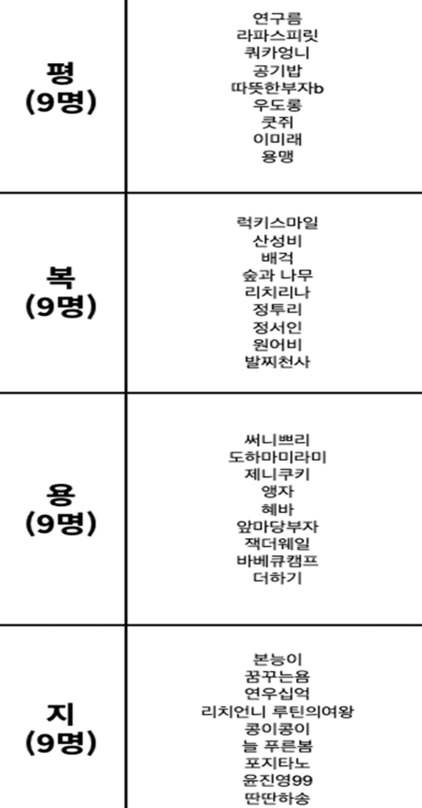 지행복평 각자의 배정된 장소로 들어갔어요.