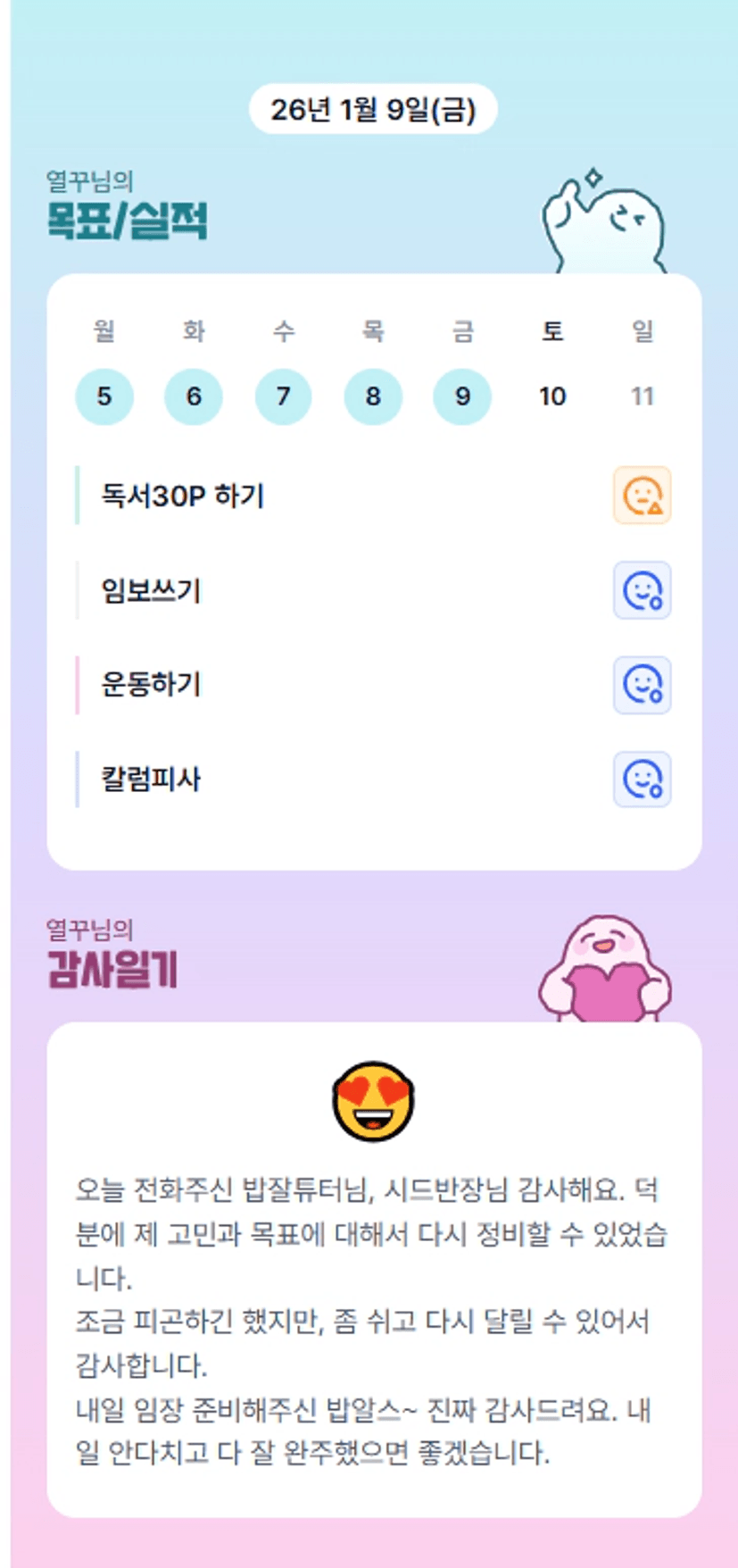 튜터님과 통화 너무 좋으셨죠? ㅎㅎ 오늘 건강하게 홧팅입니다 ^^!