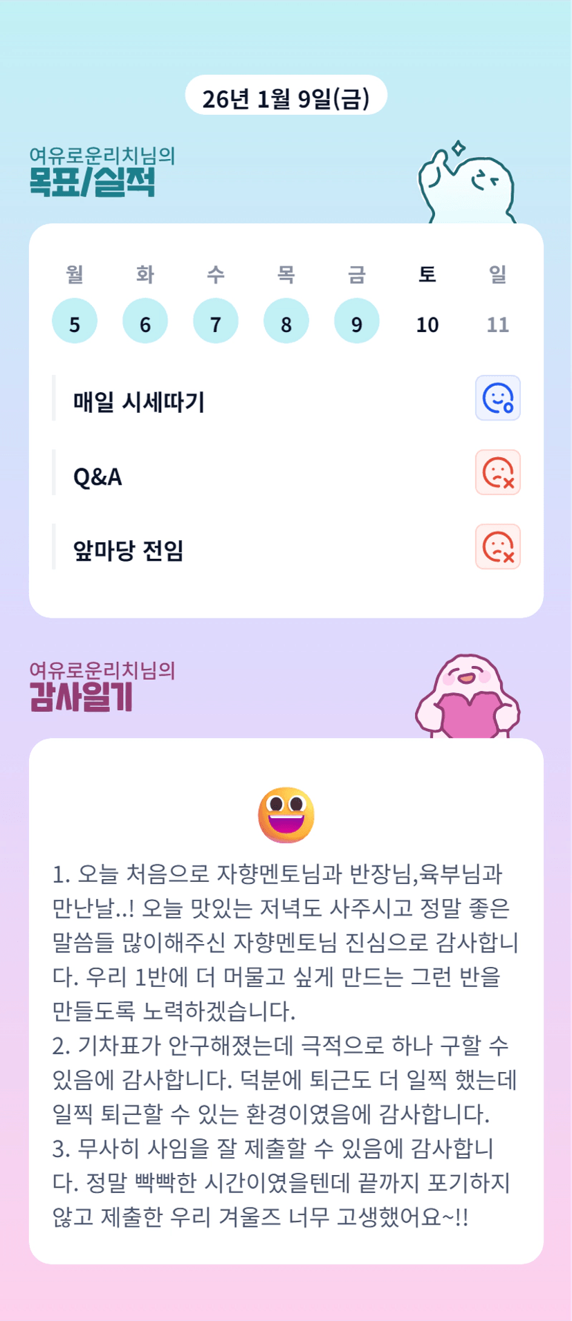 빡빡한시간. 정말 짧았나보네요. 사임제출까지 수고하셨습니다. 겨울학기도 빠이팅이에요 리치님 🫡