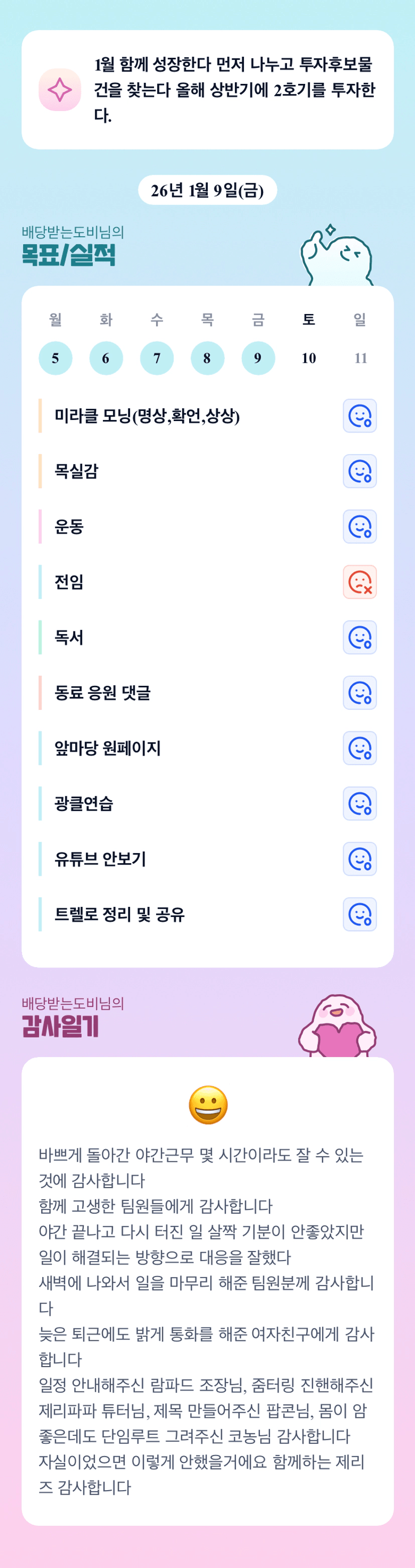 교대근무하고 피곤하실텐데, 임장하고 푹! 자요 오늘 ㅋㅋ 쫌이따봐요 도비님 😆