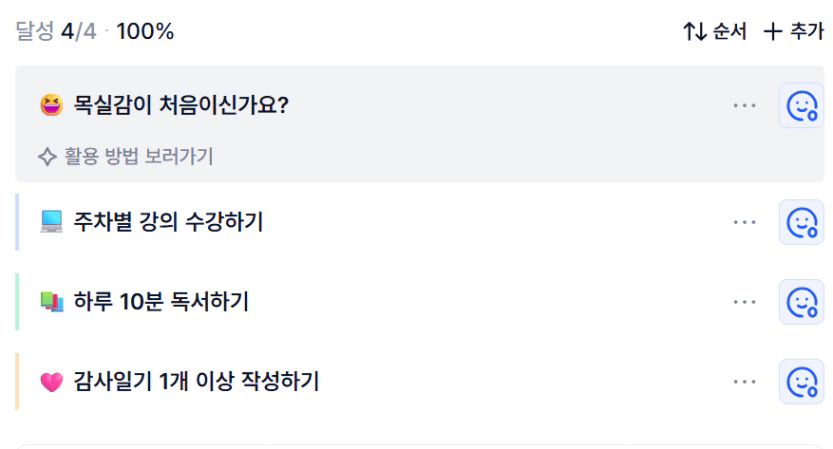 2️⃣ 1주차 목실감 작성하며 어땠는지 소감도 써보기 ✍🏻