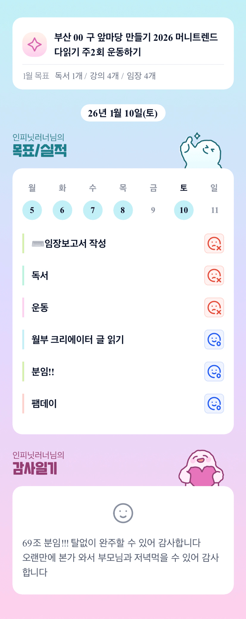 조장님!!~~세심하게 잘 챙겨주셔서 끝까지 분임완주 할 수 있었어요~감사합니다~^^