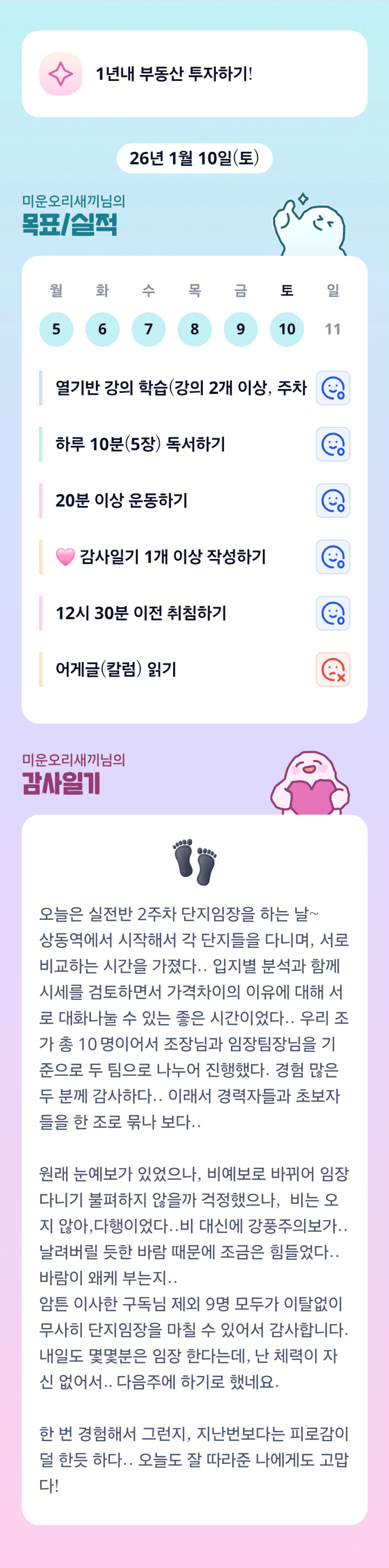 오리님~ 오늘 고생 많으셨습니다!!! 저도 완료하니까 너무 뿌듯하네요>< 게다가 강의도 2개나 오늘 들으셨군요~ 저도 얼른 듣겠습니다!ㅎㅎ