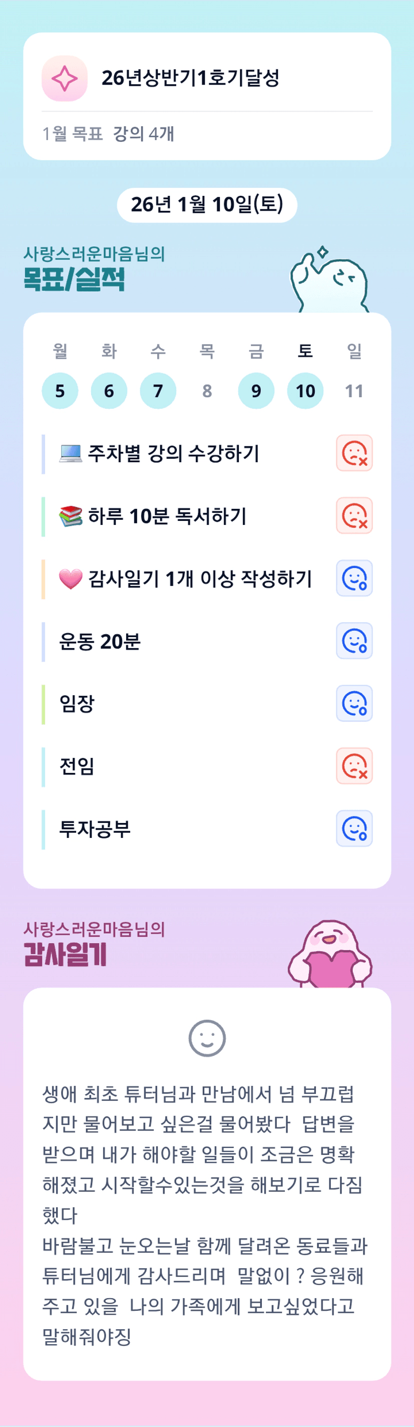 마음님 오늘 너무 고생많으셨습니다~ㅎㅎ 남은 기간도 빠이팅해보아요!!