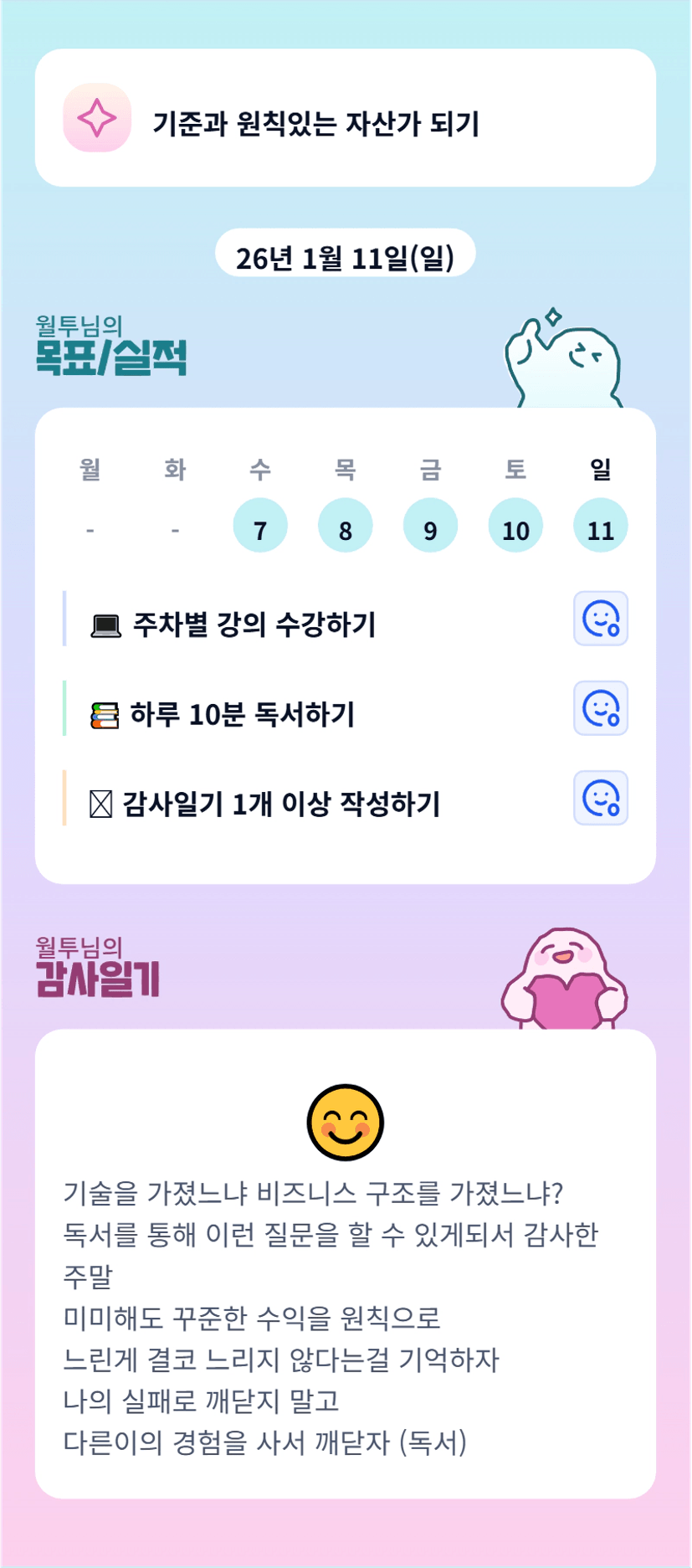하루와 한 주가 의미있게 정리되는 것 같아 좋아요.