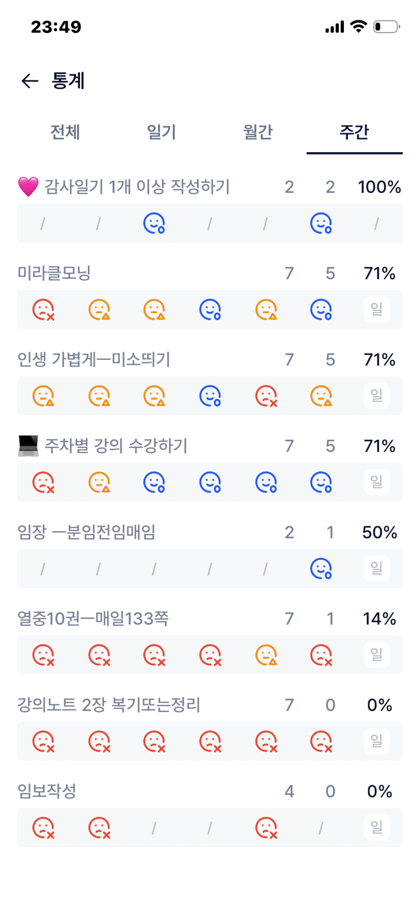 감사일기는 내가 좋아하는 뇌심리학자가 매일하는것보담 가끔씩을 추천하셔서 주 3회 작성중.