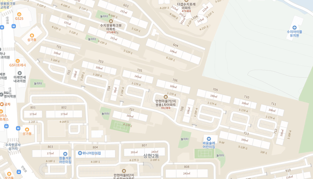 하지만 이렇게 대단지인 경우, 역에서 맨 끝동과 맨 앞동은 거리도 시간도 차이가 꽤 날 수밖에 없습니다.